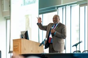 An energetic keynote speech by Charles Lanier, Executive Director of the Hunting Park Neighborhood Advisory Committee, Inc./Community Revitalization Corp. He covered the challenges faced by both Philadelphia communities and the dedicated organizations and leaders that serve them, and how resilient they are.